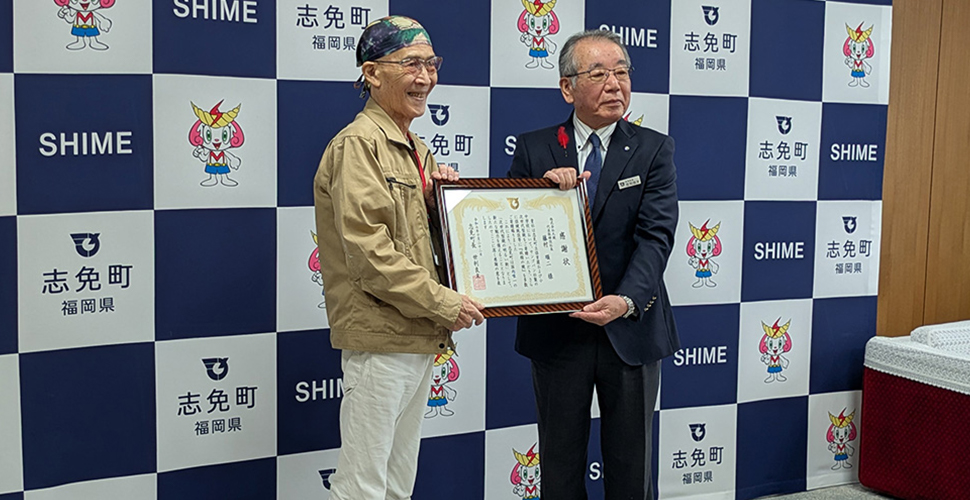 2025年10月22日。九鏡は志免町町長から感謝状をいただきました。